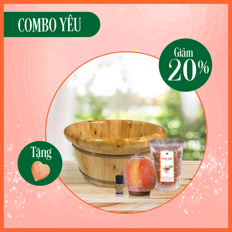 Mua 1 kí muối ngâm chân Himalaya, chậu ngâm chân , 1 đèn đá muối xông tinh dầu + 1 chai tinh dầu hoa hồng giảm giá 20% trên tổng hóa đơn
