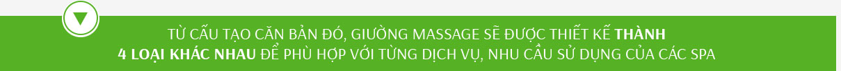 TỪ CẤU TẠO CĂN BẢN ĐÓ, GIƯỜNG MASSAGE SẼ ĐƯỢC THIẾT KẾ THÀNH 4 LOẠI KHÁC NHAU ĐỂ PHÙ HỢP VỚI TỪNG DỊCH VỤ, NHU CẦU SỬ DỤNG CỦA CÁC SPA ▿