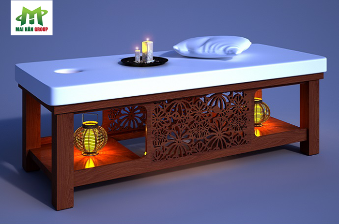 Một số Spa có concept Á Đông thường chọn loại giường massage này vì so với các giường khác, giường massage này có 2 vách CNC hoa văn, giúp tạo điểm nhấn sang trọng, với phong cách giường này, thường được sử dụng ở các hoàng gia hoặc gia đình, Spa cổ điển.