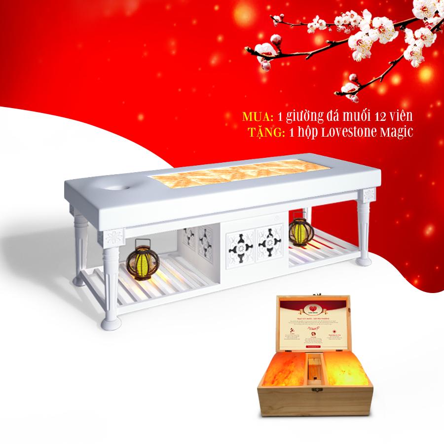 Khi mua giường đá muối 12 viên khách hàng sẽ được tặng 01 hộp Love Stone Magic trị giá 750.000VNĐ