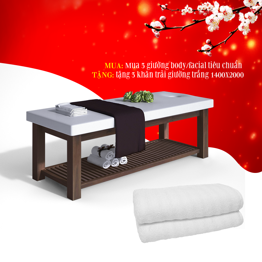 Khi mua combo 03 giường body/ facial tiêu chuẩn sẽ được tặng 03 khăn trải giường tắng 1400 x 2000