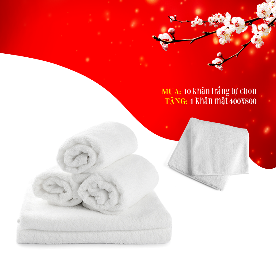 Khi mua 10 khăn trắng tự chọn sẽ được tặng 1 khăn mặt 400 x 800