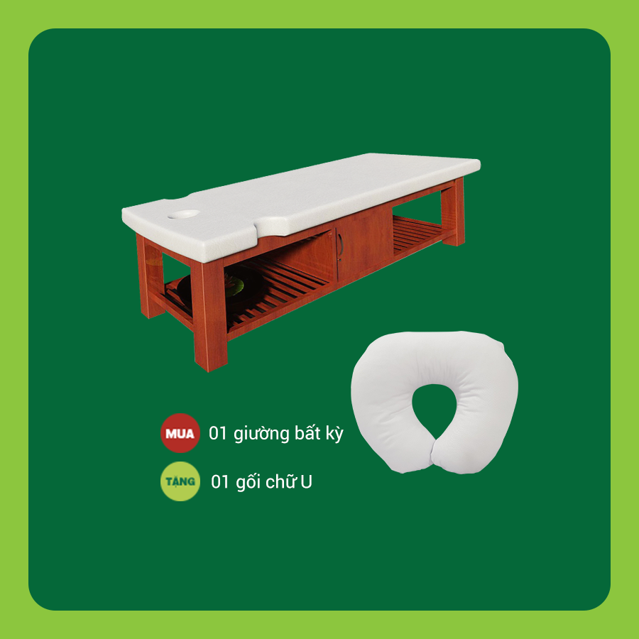 ♦ Khi mua 01 giường massage bất kỳ trị giá 2.600.000VNĐ, khách hàng sẽ được tặng 01 gối chữ U trị giá 150.000VNĐ.