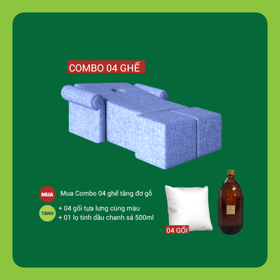 ♦ Khi mua 04 ghế massage tăng đơ gỗ trị giá 18.000.000VNĐ sẽ được tặng 04 gối tựa lưng cùng màu + 01 lọ tinh dầu chanh sả 500ml trị giá 1.050.000VNĐ.