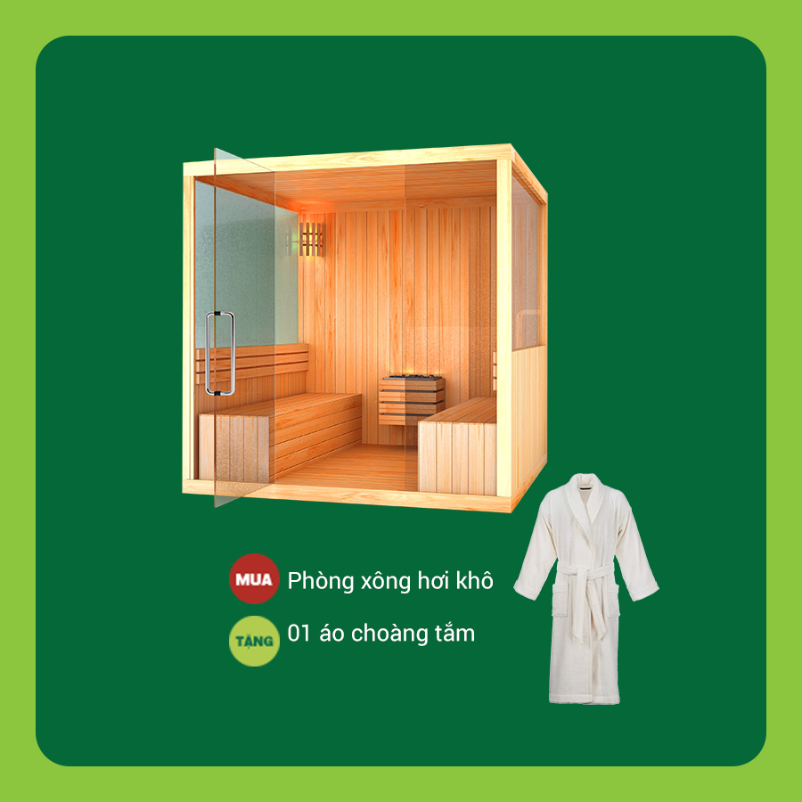 ♦ Khi lắp đặt 01 Phòng xông hơi khô hoặc 01 phòng xông hơi ướt trị giá từ 20.000.000VNĐ – 49.000.000VNĐ sẽ được tặng 01 áo choàng tắm 420.000VNĐ.