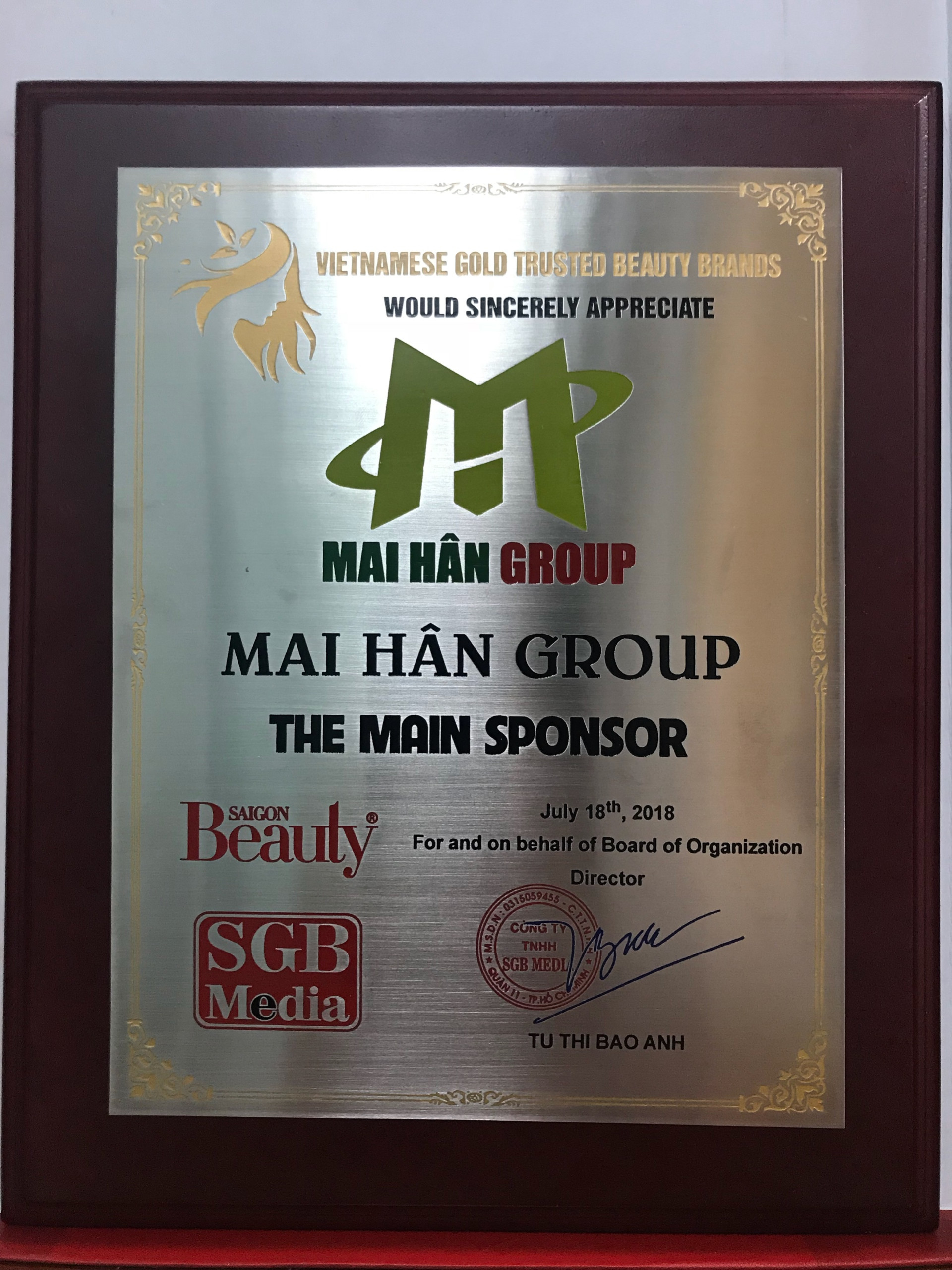 Mai Hân Group với hơn 11 năm kinh nghiệm trong lĩnh vực làm đẹp tự hào là đơn vị tài trợ chính đồng hành cùng Buổi Lễ Vinh Danh và ra mắt sách Thương Hiệu vàng Làm đẹp Uy Tín Việt Nam 2018 với mong muốn góp phần tôn vinh những doanh nghiệp, nhà sáng lập đã luôn phấn đấu để có được sự phát triển cho ngành làm đẹp nói riêng và đất nước nói chung.
