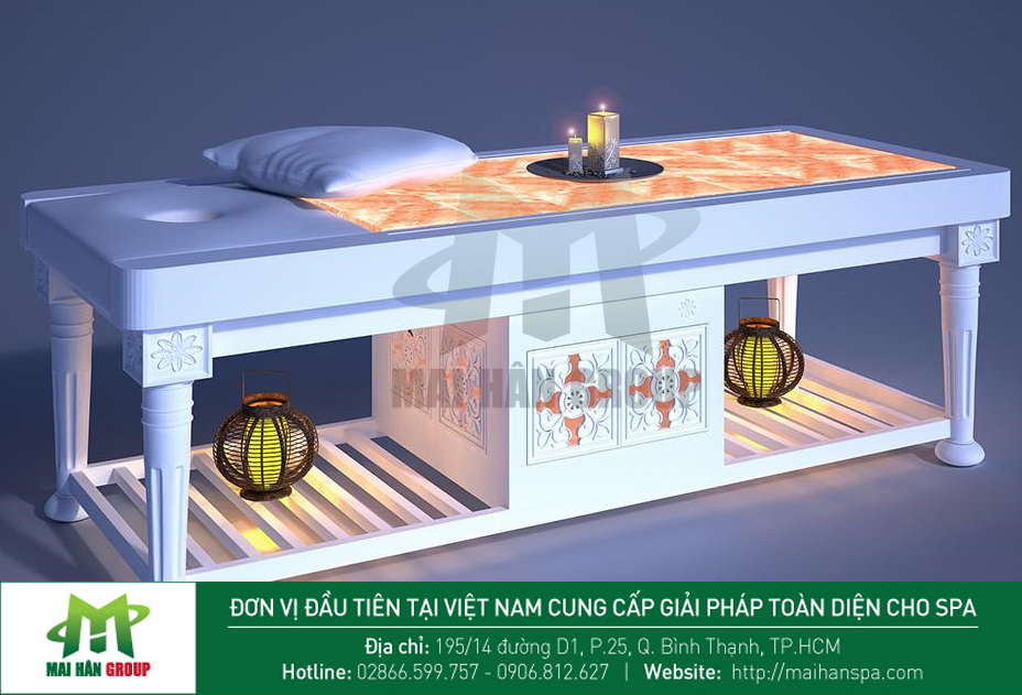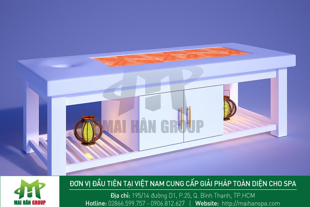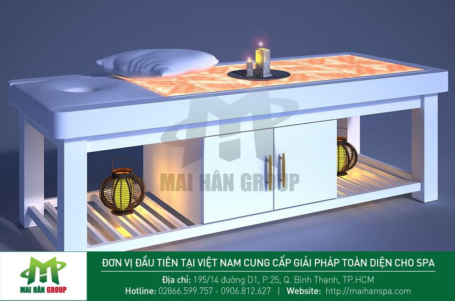 Giường massage đá muối chắc chắn là sự lựa chọn phù hợp cho quý khách hàng trong việc chăm sóc sức khỏe, làm sạch không khí, giúp phòng chống đột quỵ, thiếu máu cơ tim, tai biến mạch máu não... rất thích hợp cho các home spa, spa chăm sóc sức khỏe và spa điều trị. Khi sử dụng giường đá muối, khách hàng sẽ cảm thấy thư giãn toàn bộ cơ thể, giảm đau nhức mệt mỏi và mọi lo âu, buồn phiền sẽ tiêu tan.