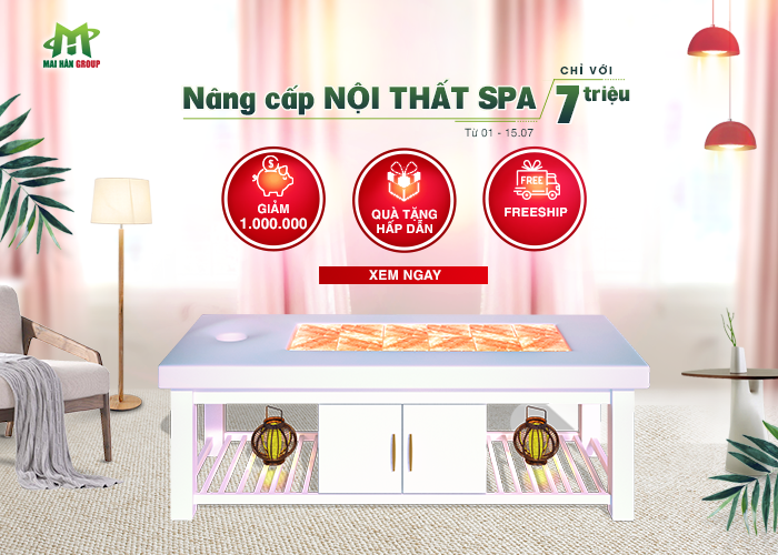 Tháng 7 ngập tràn, muôn vàn khuyến mại. Cùng chào đón tháng 7 bằng chương trình khuyến mại cực shock “MUA SẮM THẢ GA – NÂNG CẤP NỘI THẤT SPA CHỈ VỚI 7 TRIỆU ĐỒNG” với những ưu đãi vô cùng to lớn!