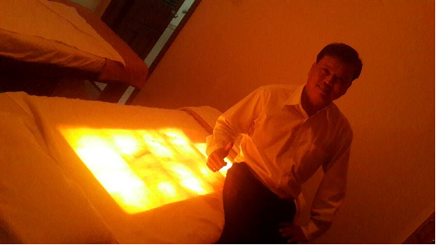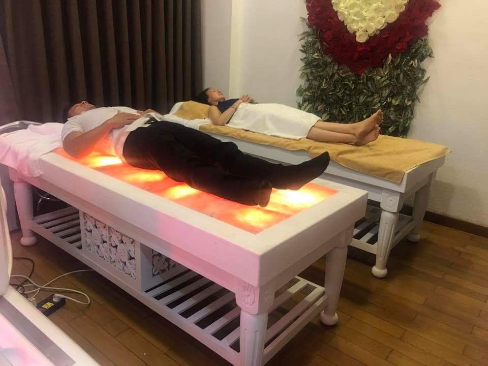 Khách hàng sử dụng giường Đá muối Himalaya tại nhà và trải nghiệm tại Mai Hân Spa