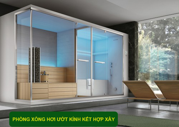 Phòng xông hơi ướt kính kết hợp xây